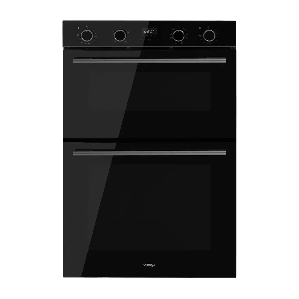 The 60cm 12 Function Double Oven, Midnight (ODO6012M) offers a versatile cooking experience with its 12 functions, including 4 upper and 8 lower settings. It boasts a substantial 107L gross oven capacity, split into a 42L upper and 65L lower oven, providing ample space for all your cooking needs. The oven features stylish midnight fluted steel control knobs and a manual Minute Minder Timer for precise cooking control. Its sleek design is accentuated by black glass with a midnight aluminum trim. Practical features like a cavity cooling system and a grey crystal clean enamel interior make maintenance effortless.