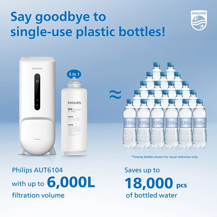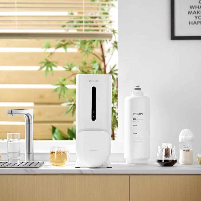 The 5-layer filter cartridge (Philips AUT609R800/00) is tested to keep its performance for at least 6,000 liters of water purification. Recommended to replace after 2 years of usage. A filter lifetime indicator on the smart faucet will remind you when the cartridge is nearing the end of its lifetime and should be replaced.