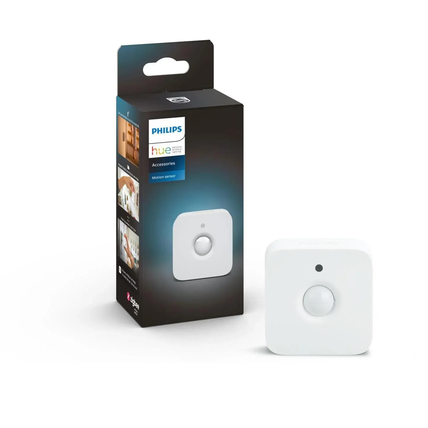 Triggers your Philips Hue lights when motion is detected. Connect the Philips Hue motion sensor to your Philips Hue bridge via the Philips Hue app, and it will automatically turn on your Philips Hue lights when you enter a room. Perfect for your hallway, bathroom, basement or garage. You can choose in the app which scene or light setting should be triggered when motion is detected. The lights will turn off automatically, when motion is no longer detected.