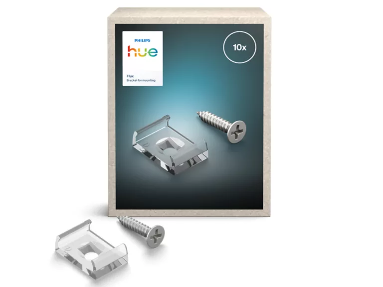 Easily install or re-install your Hue Flux and Flux ultra-bright strip lights on any surface inside the home with these specially-designed mounting brackets. Screws and adhesive tape are included for easy under-cabinet and textured wall mounting, and long installation support. Transparent design ensures uninterrupted light consistency and quality.