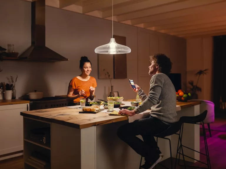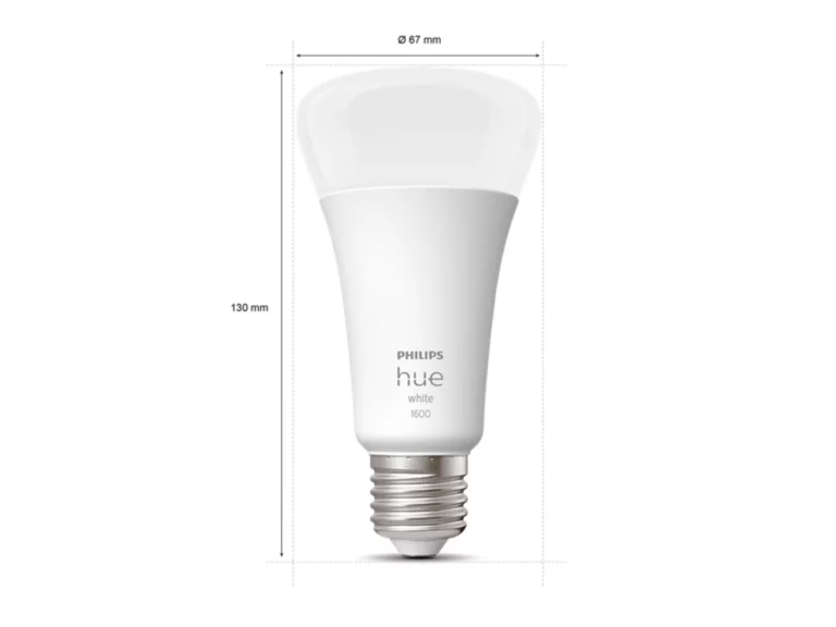 Get bright lighting for spaces such as the garage or kitchen, as well as softer light for any room, with a Philips Hue White A67 bulb, which offers a powerful 1600 lumen output (equivalent to 100W) and wireless dimming. Connect to a Hue Bridge to unlock the full suite of smart lighting features.