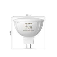 This Philips Hue White and colour Ambiance MR16 LED bulb 5.1 W 400 Lumens allows you to easily set the right light intensity in your home. Let it fill the space around you with different colors and shades of white, from cold white to warm white, at all times of the day. To exploit even more of its potential, you can install the Philips Hue Bridge.