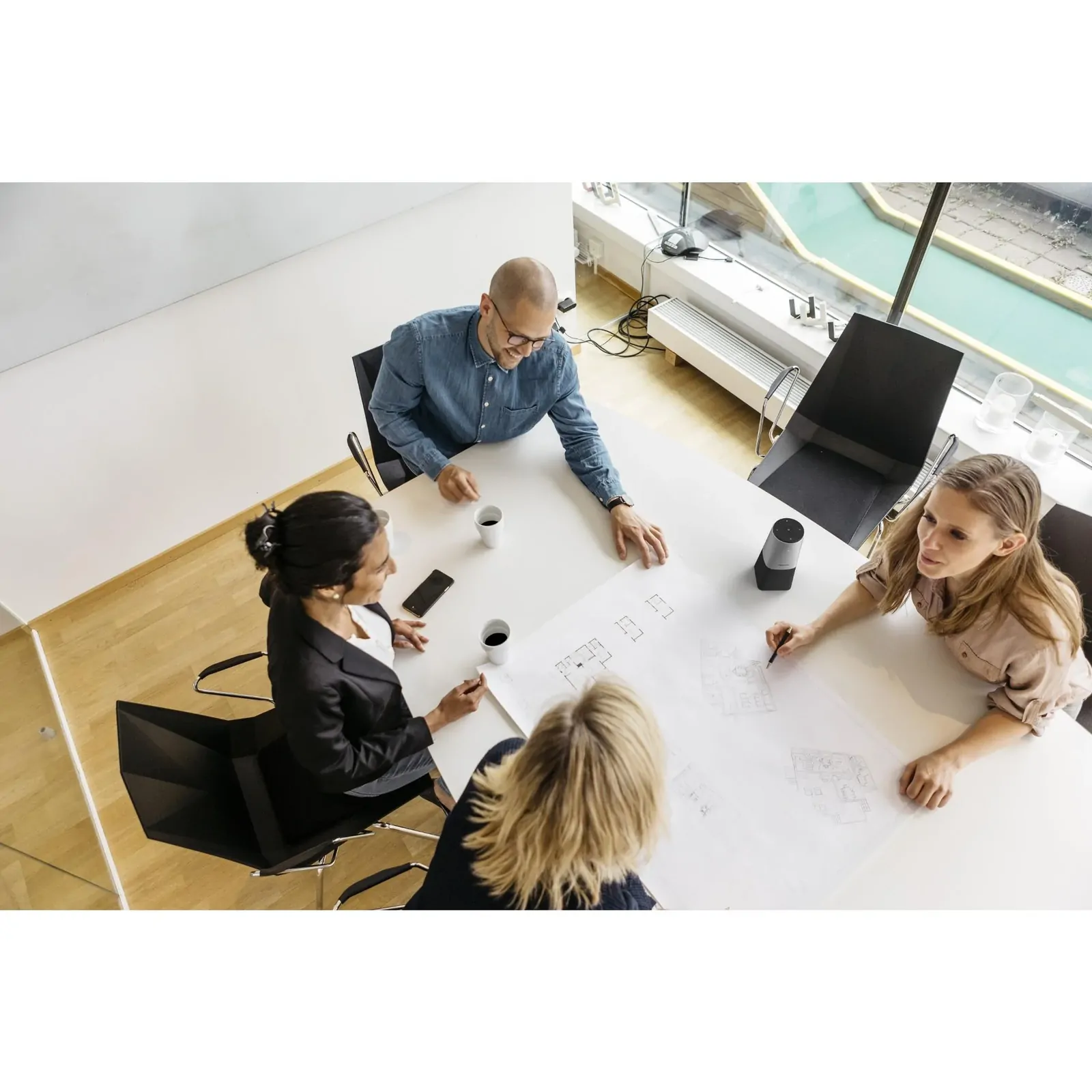 360°recording with high-quality 4-array microphone for clear meeting recordings