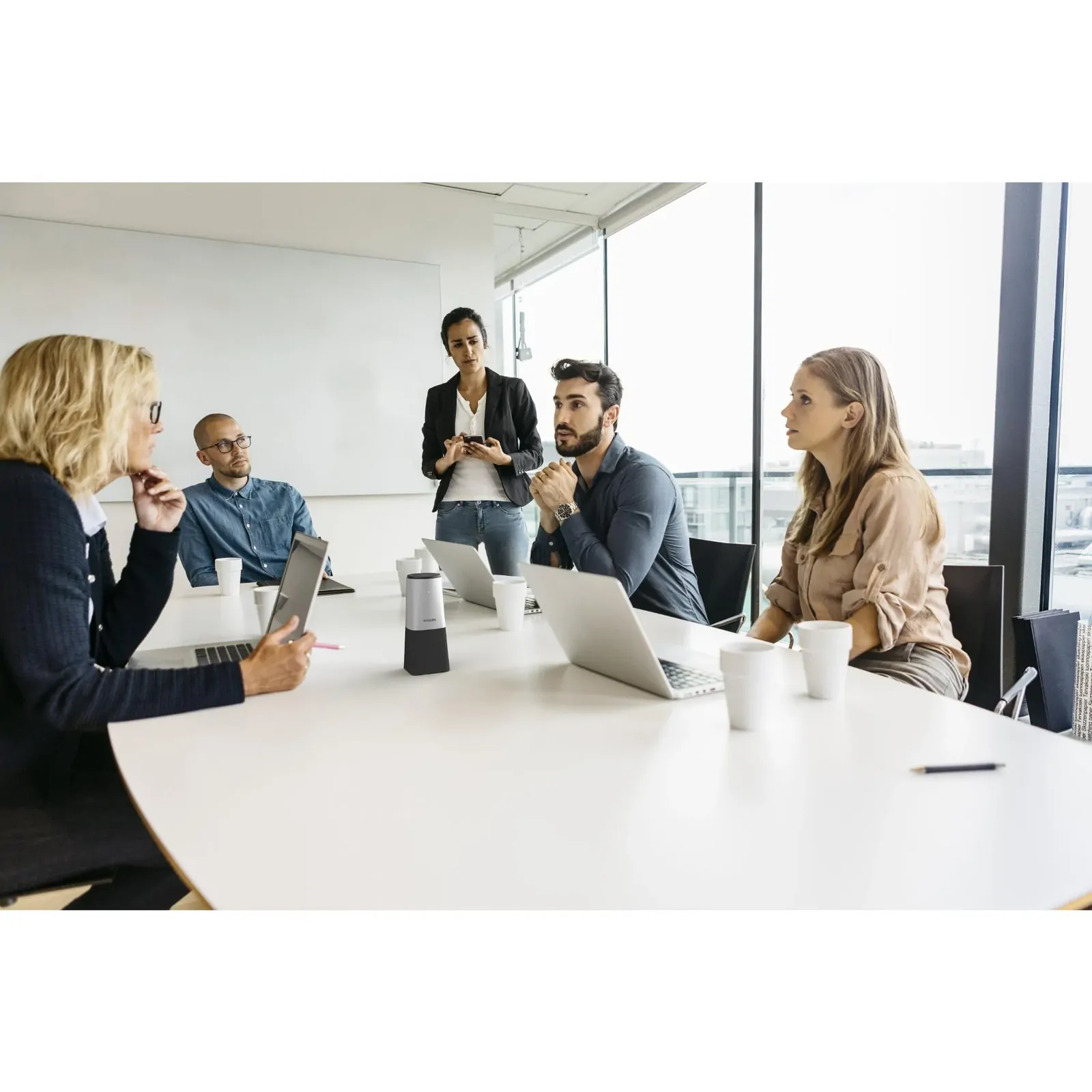 he Philips SmartMeeting Conference Microphone and Sembly Meeting Assistant take part in meetings with you as your dedicated note takers. The microphone’s smart speech-enhancing and noise-filtering technology ensures clear and natural sounding calls. Sembly creates automatic transcripts, summaries and highlights action points and to dos for you. The solution helps you find out who said what easily and quickly after every meeting, even if you could not attend.