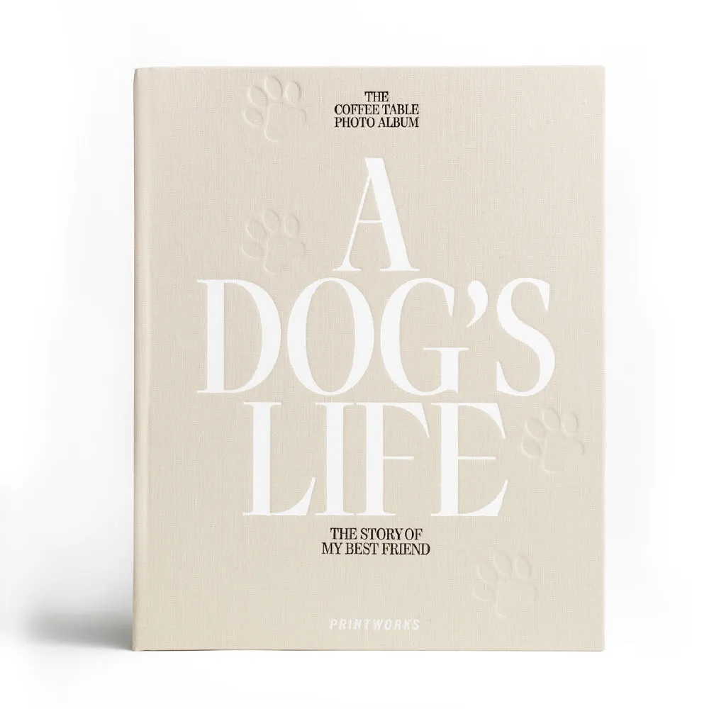 Printworks Dog Album-A Dogs Life - Celebrate the life of your four-legged best friend with A Dog’s Life Photo Album – a beautiful coffee table album designed to preserve your favourite moments together. With a timeless beige cloth cover and elegant white lettering, this album is a stylish way to showcase the memories that make your dog part of the family.