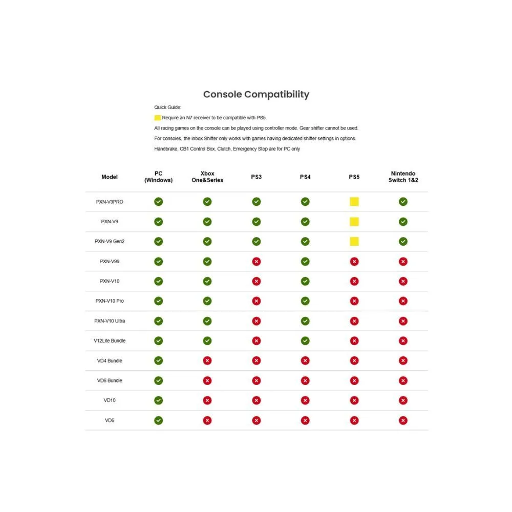 • Compatible with PC, PS4, Xbox One, Xbox Series X|S; PS5 support with PXN N5 Converter (sold separately).