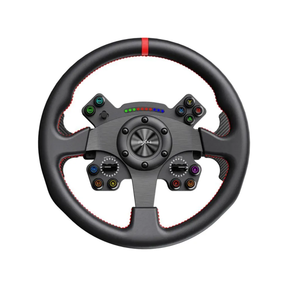 The 330mm steering wheel is wrapped in ultra-fibre leather for comfort and grip, with carbon fibre Hall paddle shifters and LED RPM indicators for immersive racing feedback. With quick-release mounting and PXN SimRacing software support, setup and customisation are fast and simple.