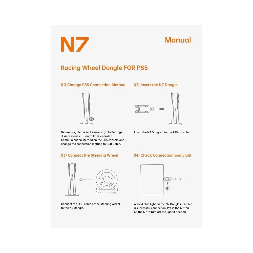 Featuring a simple plug-and-play USB setup, the PXN N7 converter enables smooth compatibility with supported PXN racing wheels and arcade sticks. It is an ideal solution for sim racing enthusiasts seeking consistent, responsive control when gaming on PS5.