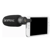 Broadcast-quality directional microphone for smartphones and tablets with 3.5mm TRRS headphone connector.