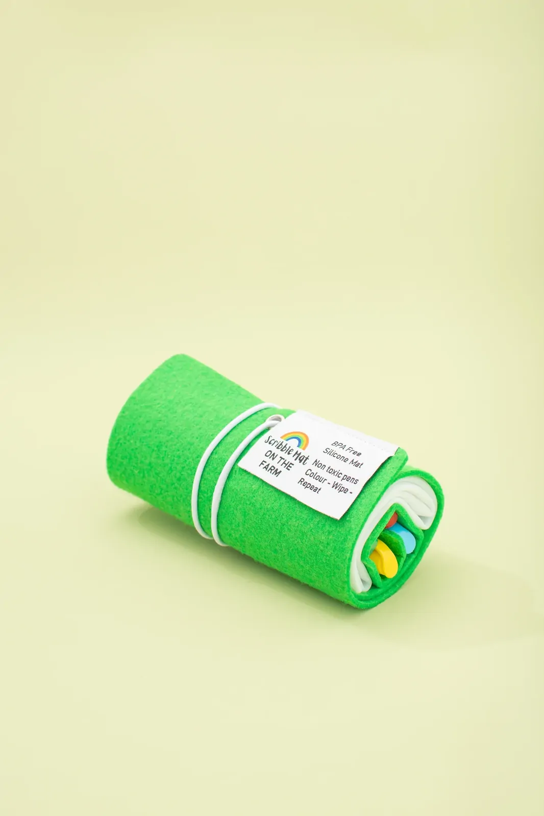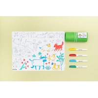 Convenient felt storage pouch – Never lose a pen again with our signature felt storage pouch! Tying up securely with elastic, the durable felt pouch contains slots to house the silicone mat and four pens, helping little ones keep track when packing up independently. The roll-up felt pouch makes this colouring pack a portable, all-in-one activity for on-the-go creativity.