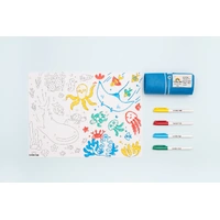 Experience the calming beauty of the ocean with our Under the Sea reusable colouring mat. Introduce your little one to an array of diverse marine life, including a wonderful whale shark, magnificent manta ray, friendly fish, tenacious turtles and a curious crab, all swimming within colourful coral.