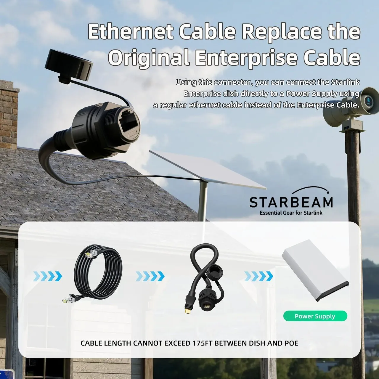 Enhance your Starlink Enterprise setup with a durable and high-performance Ethernet adapter cable designed for seamless outdoor connectivity.