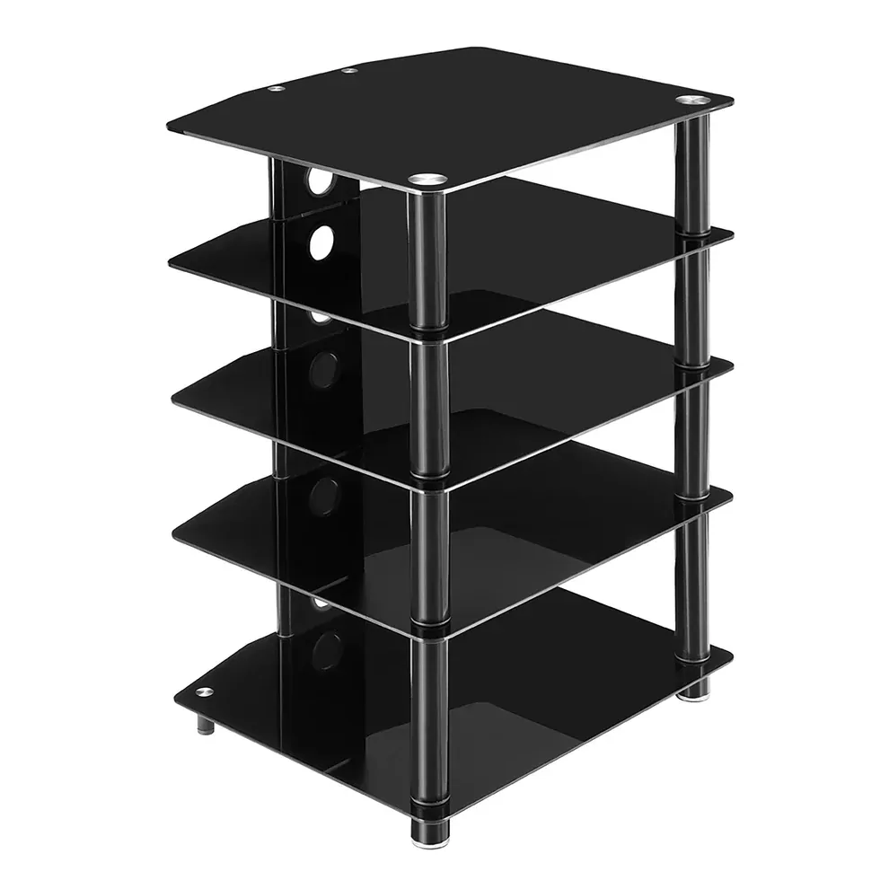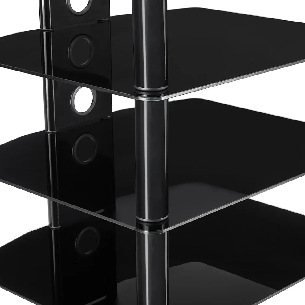 With the flexibility to assemble as a 4- or 5-tier unit, this versatile rack adapts effortlessly to your audio/video setup. Whether showcasing your amplifier, receiver, turntable, or gaming console, each shelf delivers stability, cable concealment, and style. The angled rear corners and integrated cable management panels help streamline the look while reducing clutter.