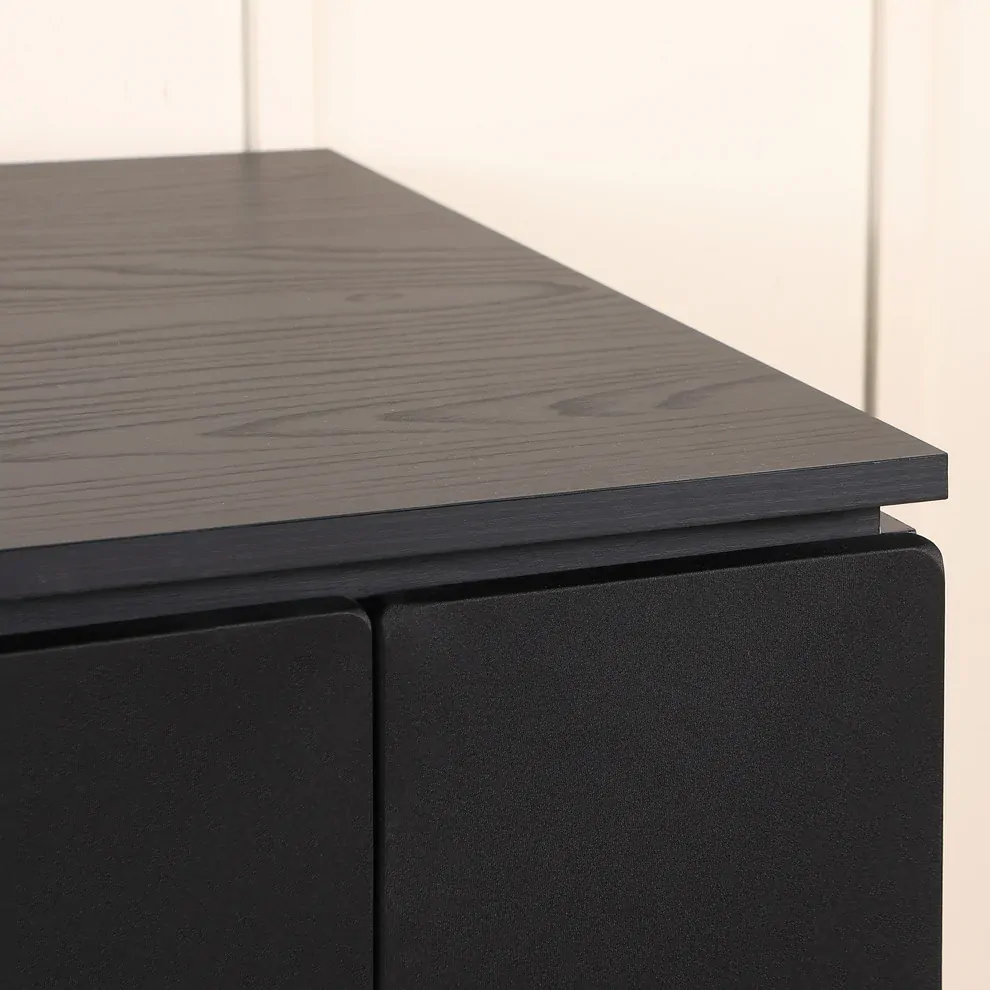 Primary Colour: Black Oak Veneer with Black Panel Feature, Black Fabric Doors.
