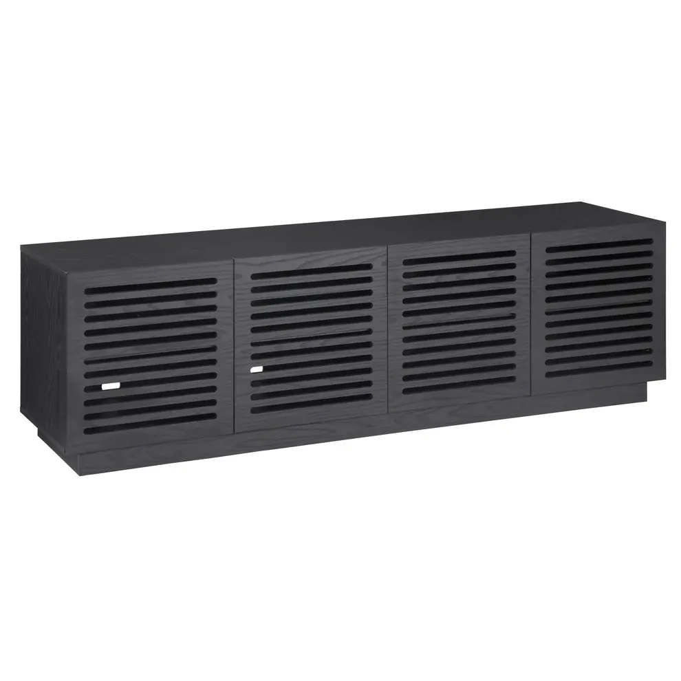 The BURBANK2000BO features four slatted cabinet doors, combining a sculptural look with practical ventilation for electronics. Inside, you’ll find adjustable-height internal shelving, dedicated cable management, and ample storage flexibility. Whether your setup includes streaming devices, gaming consoles, or high-end AV gear, this unit ensures everything has its place—neatly tucked behind minimalist doors with cut-out handles.