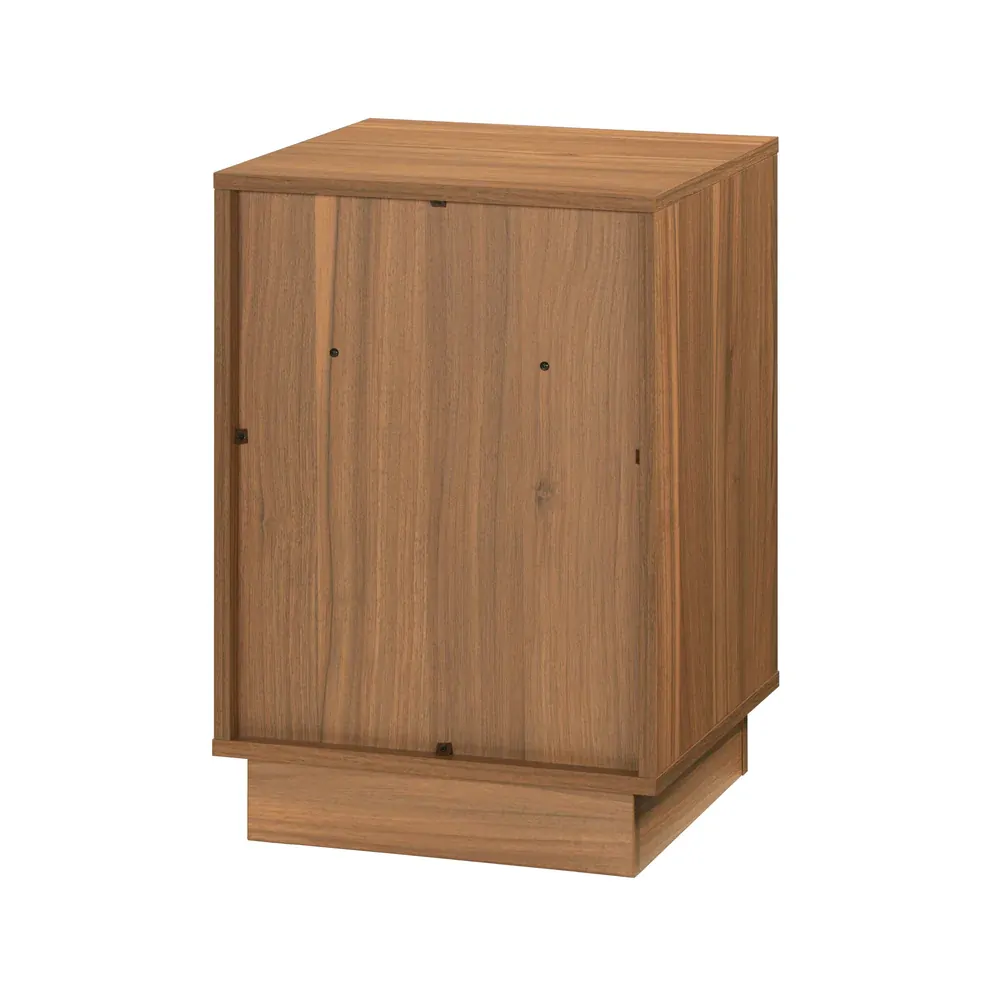The Tauris BURBANKETWAL Side Table is a compact yet statement-making accent piece designed to complement any contemporary lounge, bedroom, or entertainment space. With its walnut melamine veneer finish, bold slotted door design, and wooden plinth base, this side table offers both aesthetic balance and functional versatility.