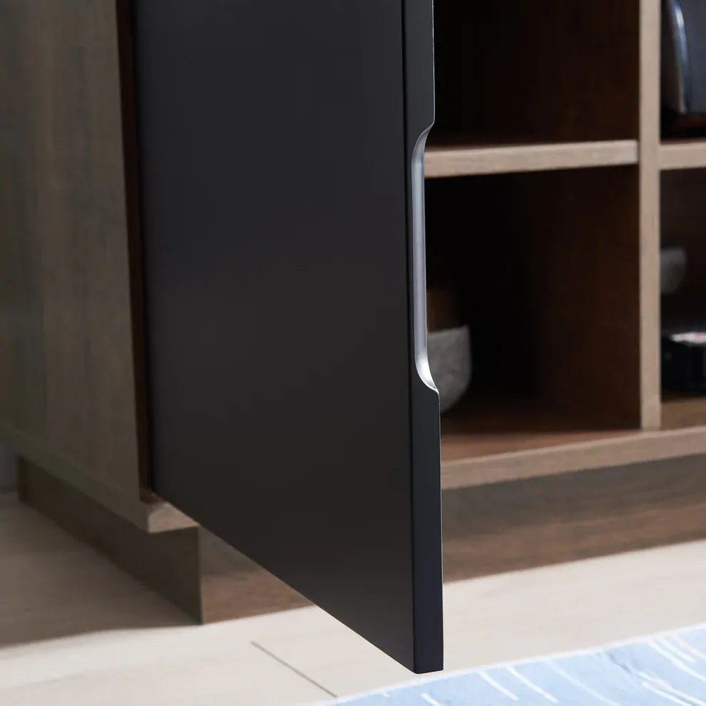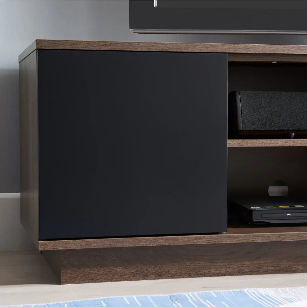 The Tauris Delux Entertainment Center features two black painted doors and solid wood plinth in a stylish dark oak and black finish. Its sound bar space, two component spaces and cable management make it perfect for a modern home entertainment setup. With a 12-month warranty, you can be sure of its quality and reliability.