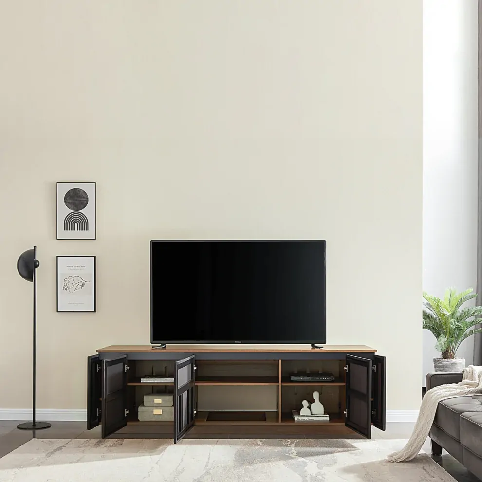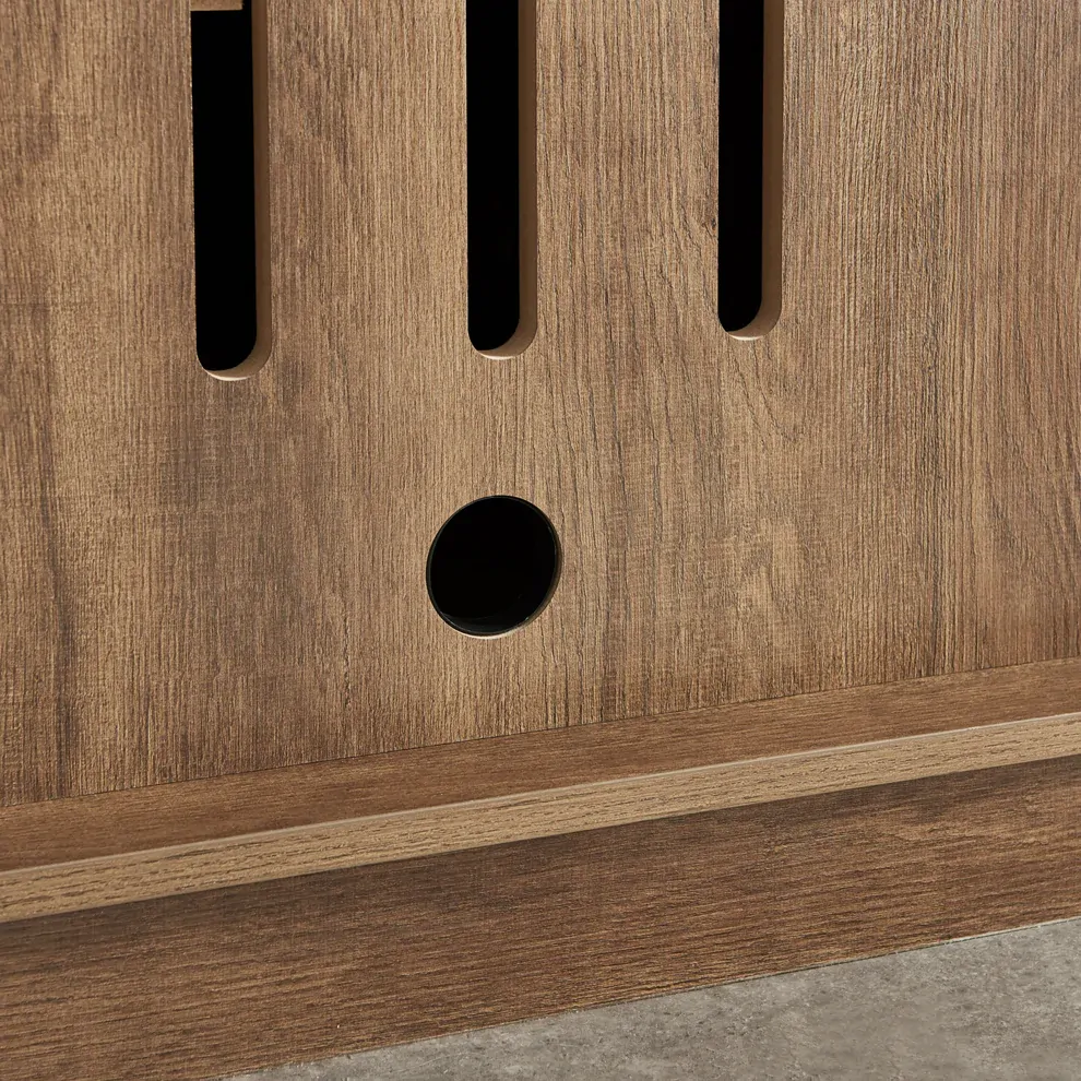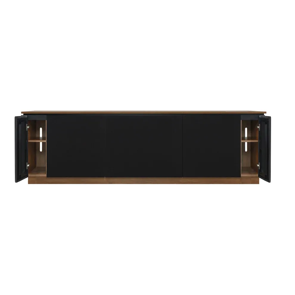 The Tauris Hollywood Entertainment Center is designed to make your TV viewing experience amazing. It is made of solid wood and features built-in subwoofer and front speaker space, IR-friendly cloth doors for better sound transference, ventilation channels to prevent overheating, cable management holes and channels, and a power board and cable shelf on the rear. It is completed with an anti-tip kit and a 12-month warranty.