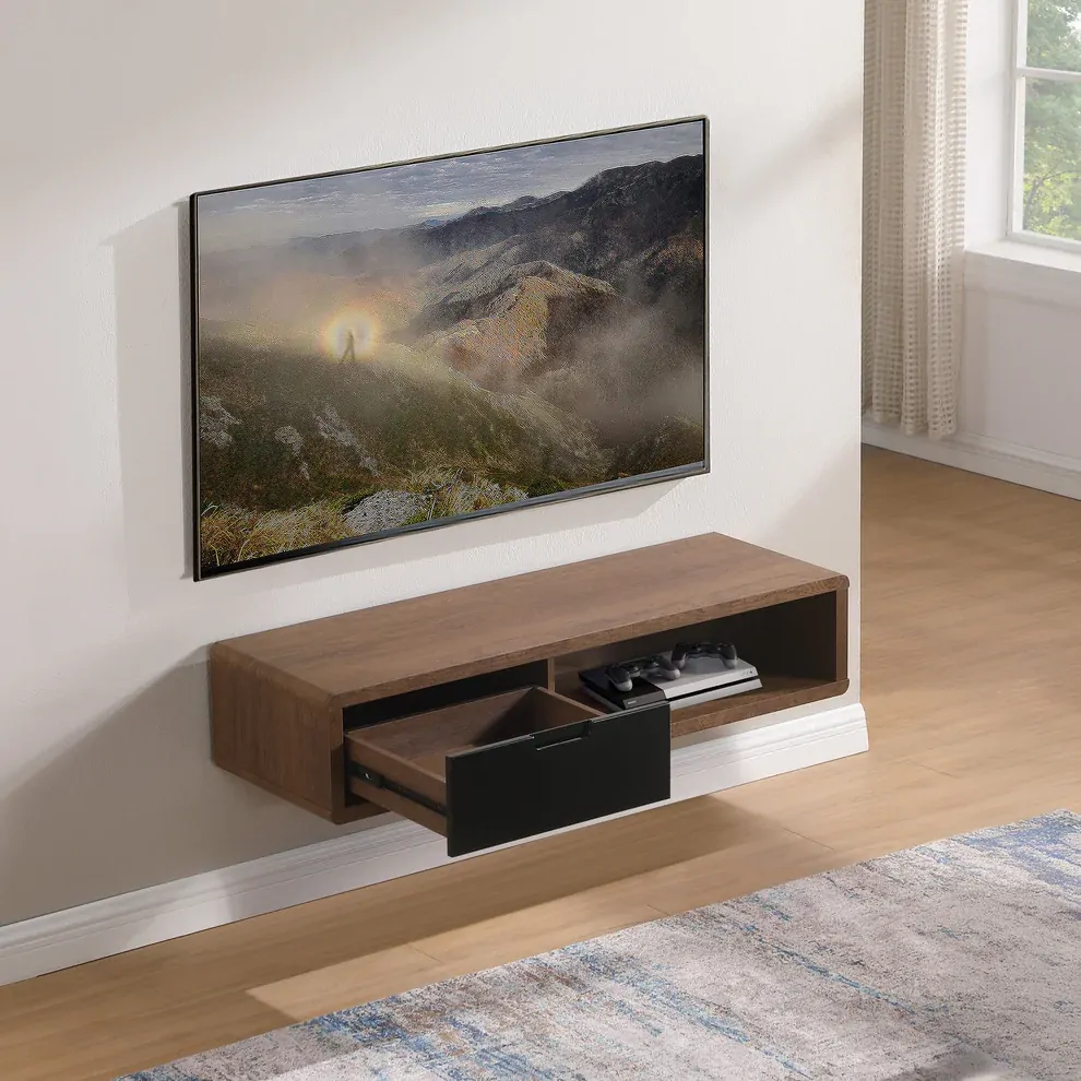 The Tauris Hover Entertainment Center is a modern and functional entertainment storage solution. With one painted drawer, one open component space, and one wall mount kit, this unit provides ample storage. With the rear and bottom cable management holes allow for easy and convenient device setup.