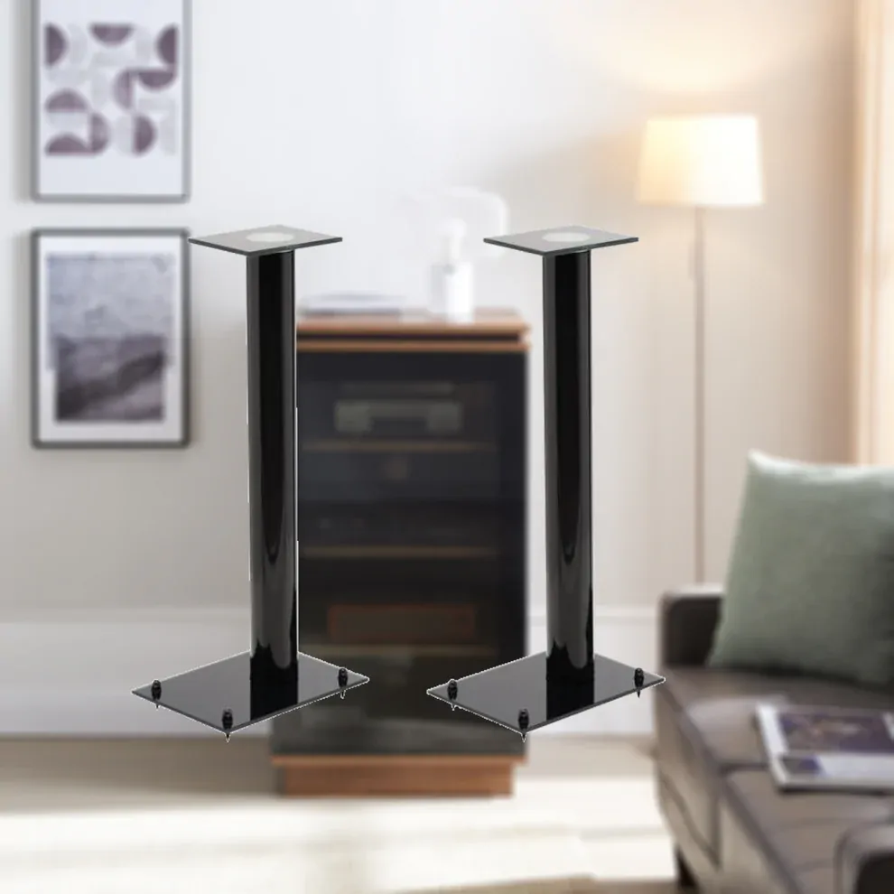 Tauris Opal SS38 Speaker Stands feature a tempered glass base and shelf, gloss black round tube, and stylish metal feet for a reliable and stylish setup. Enjoy your audio setup with the strength and style of the Tauris Opal SS38 Speaker Stands. With a height of 965mm they will ensure that your bookshelf speakers are sitting at an ideal height for your listening pleasure.