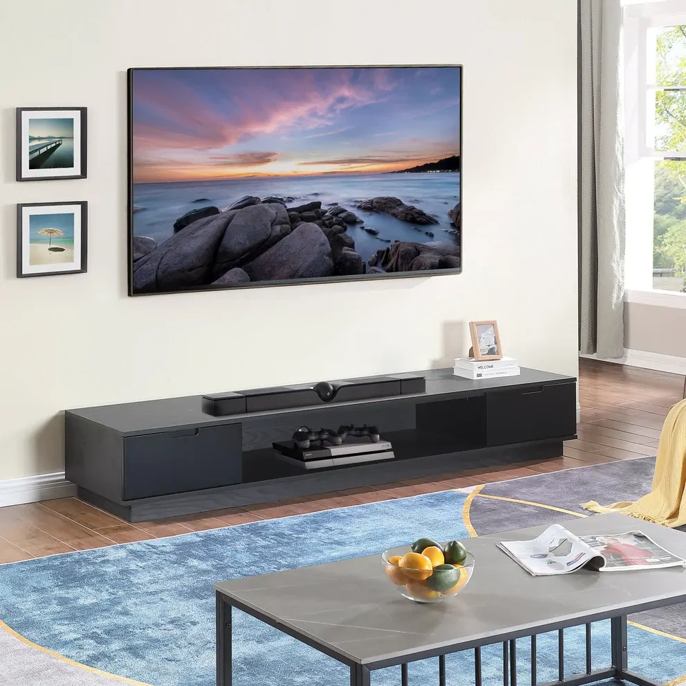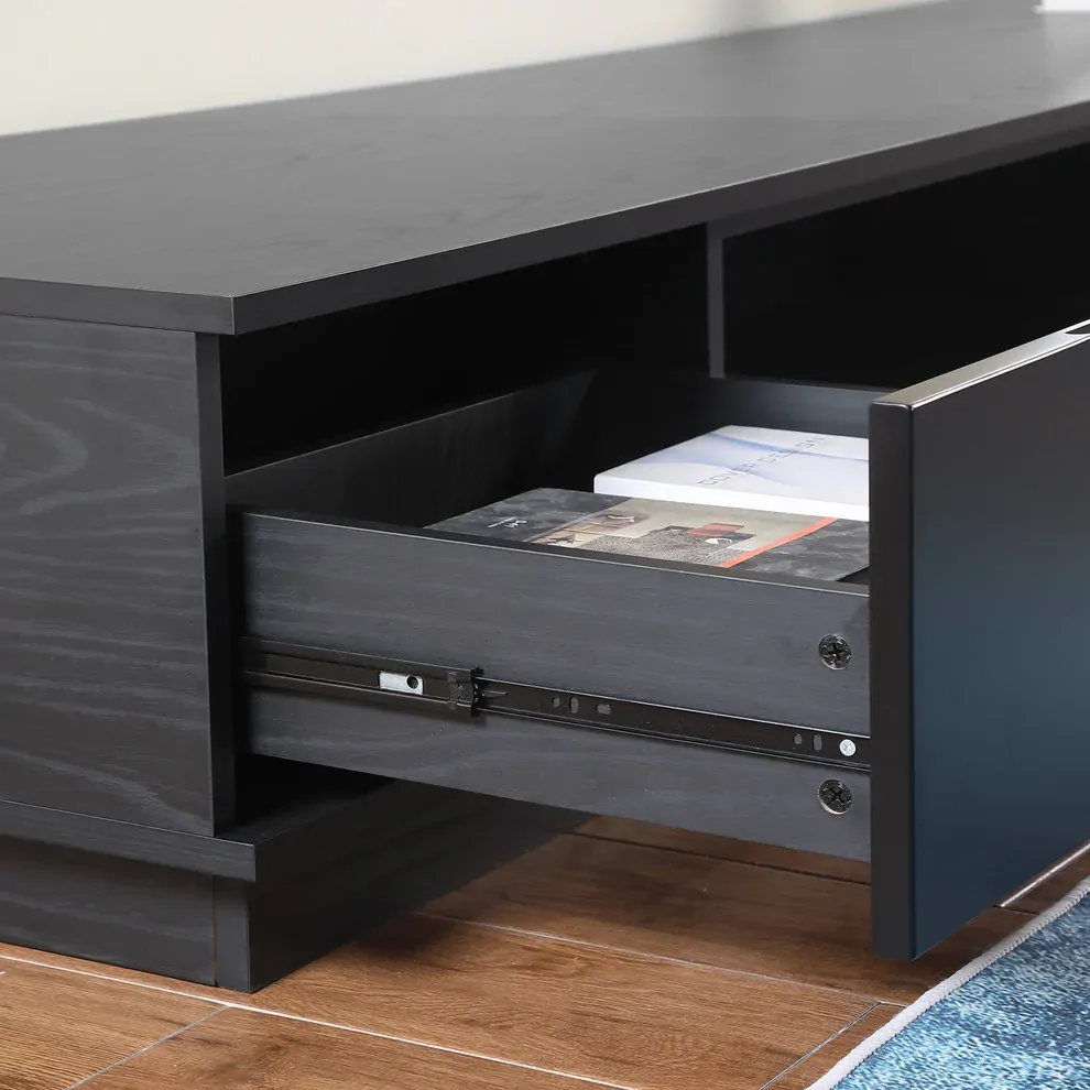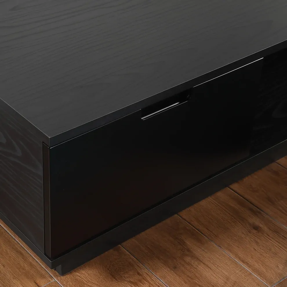 The Tauris Rio Entertainment Centre is the perfect choice for both style and function. Constructed with a black oak cabinet and re-enforced to accommodate heavier TVs, its 550mm deep design allows for larger TV stands or legs. With black painted drawers, this unit features cable management, a solid wood plinth and a large centre speaker or sound bar shelf or component space all of which make this entertainment unit an ideal choice. The Tauris Rio Entertainment Centre is perfect for all your large screen TV needs. Item comes with a 12 month warranty.