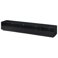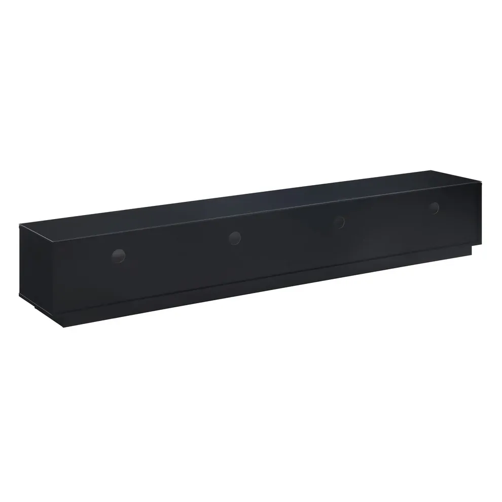 The SUAVE2200BLK Low Line TV Unit is designed to complement modern living spaces, offering a sleek, functional solution for housing your home entertainment system. Finished in a stylish semi-gloss black melamine with a striking tempered glass top, this wide, low-profile TV cabinet is perfect for large-screen TVs and sound bars.