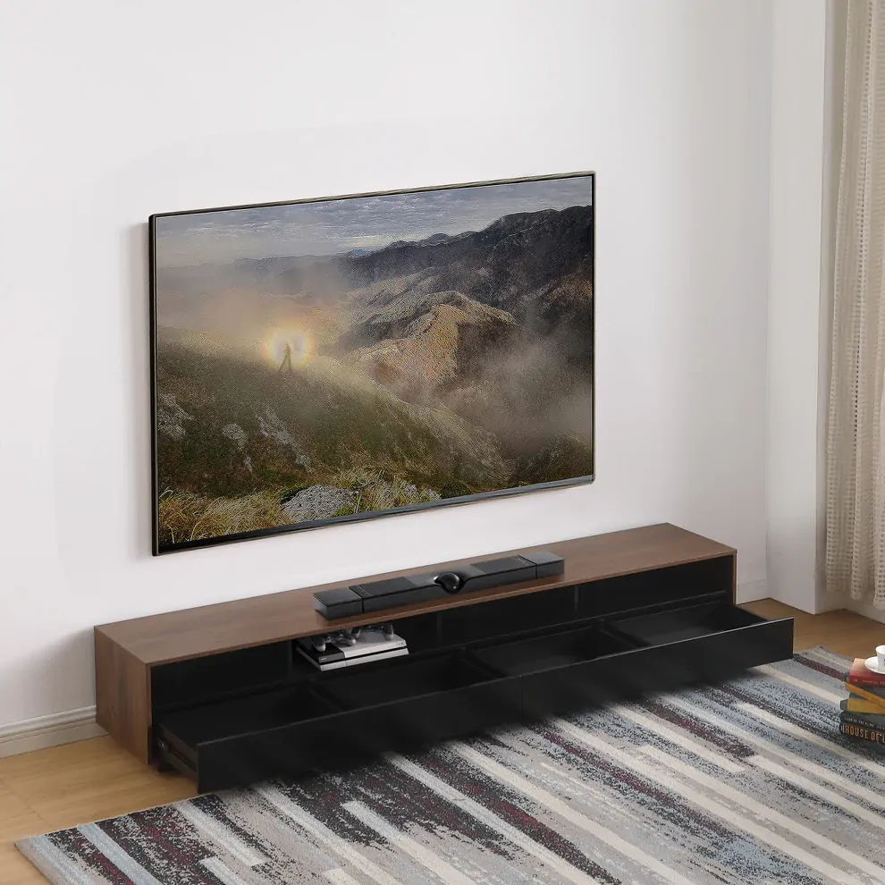 Designed with versatility in mind, it features four spacious component shelves or an extended sound bar shelf option, two large drawers with four internal compartments, and built-in cable management to keep your setup neat and organized. The solid timber plinth enhances stability and style, while ball-bearing runners ensure smooth drawer operation.