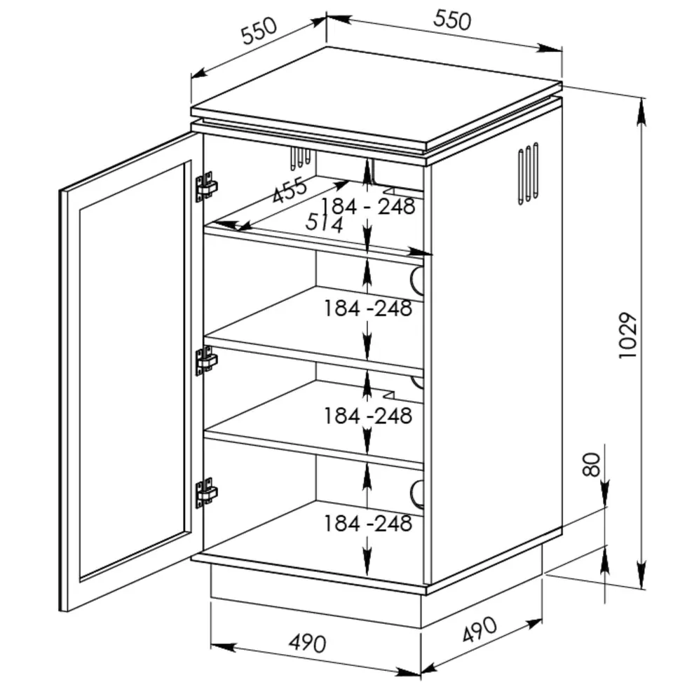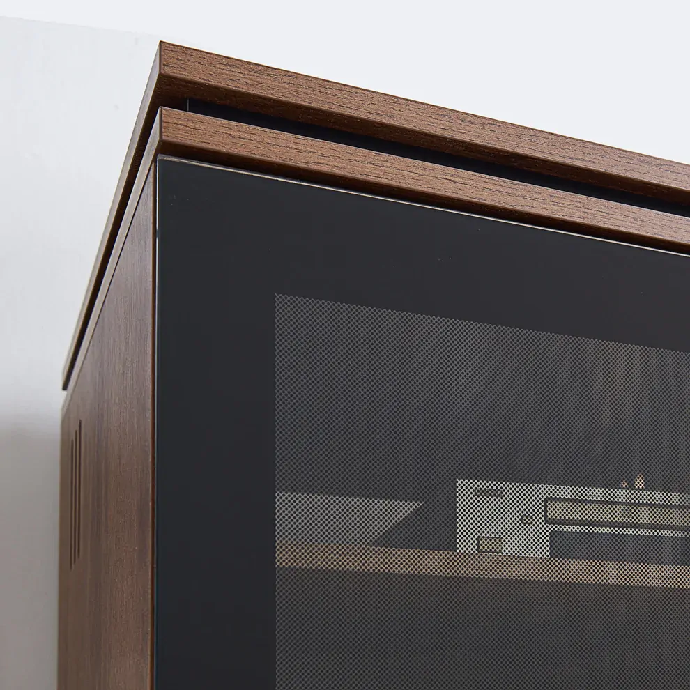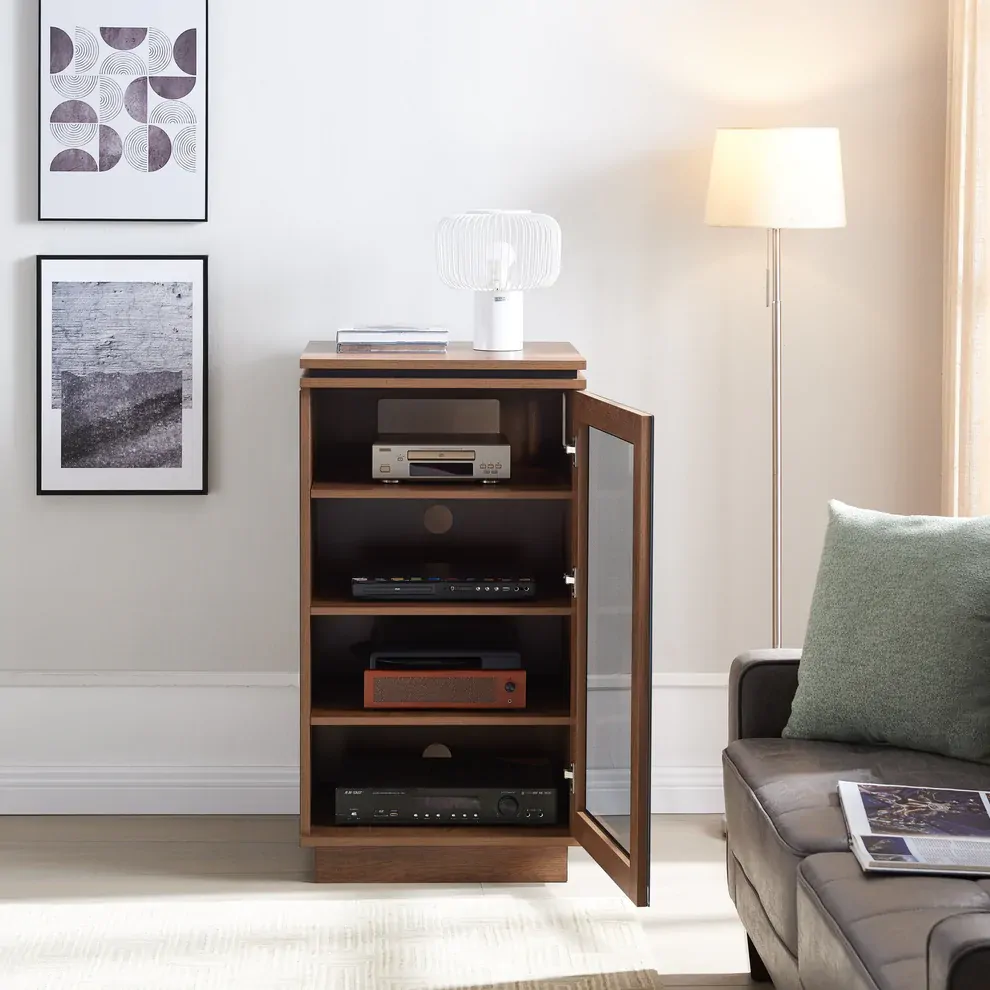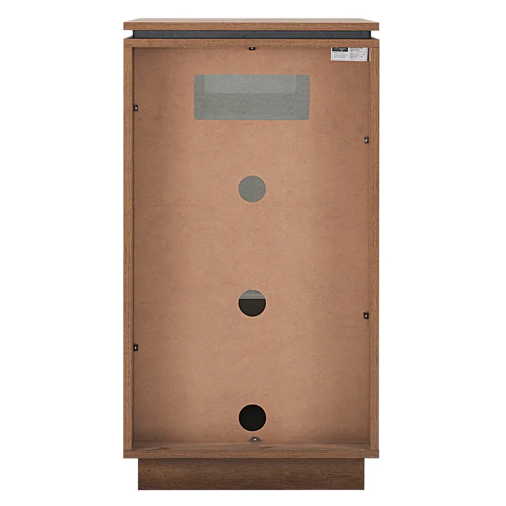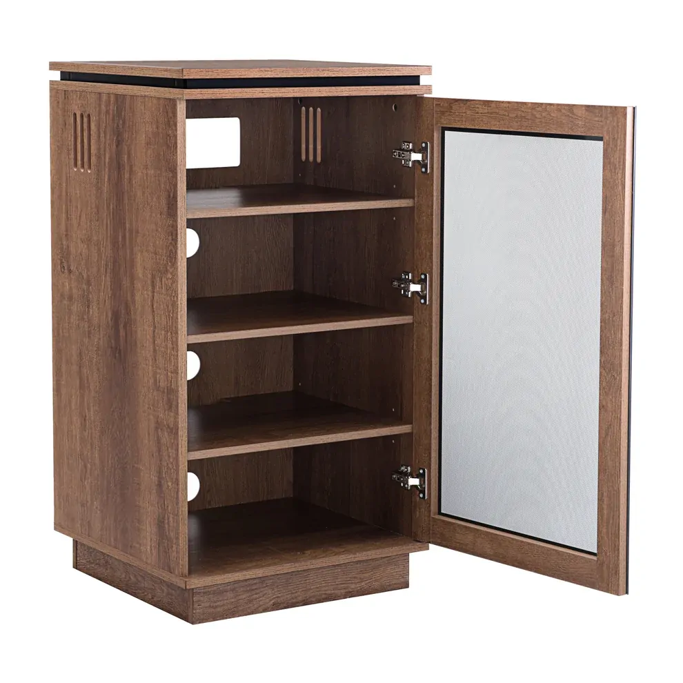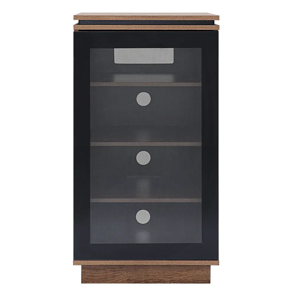 The Tauris Titan Media Storage Cabinet provides ample space for media storage with four shelves, including two adjustable shelves. It's finished with a stylish Dark Oak exterior and IR friendly tempered glass door with three hinges. The cabinet also features cable management, ventilation channels and black edge highlights, as well as a wood plinth. Perfect for any living space!