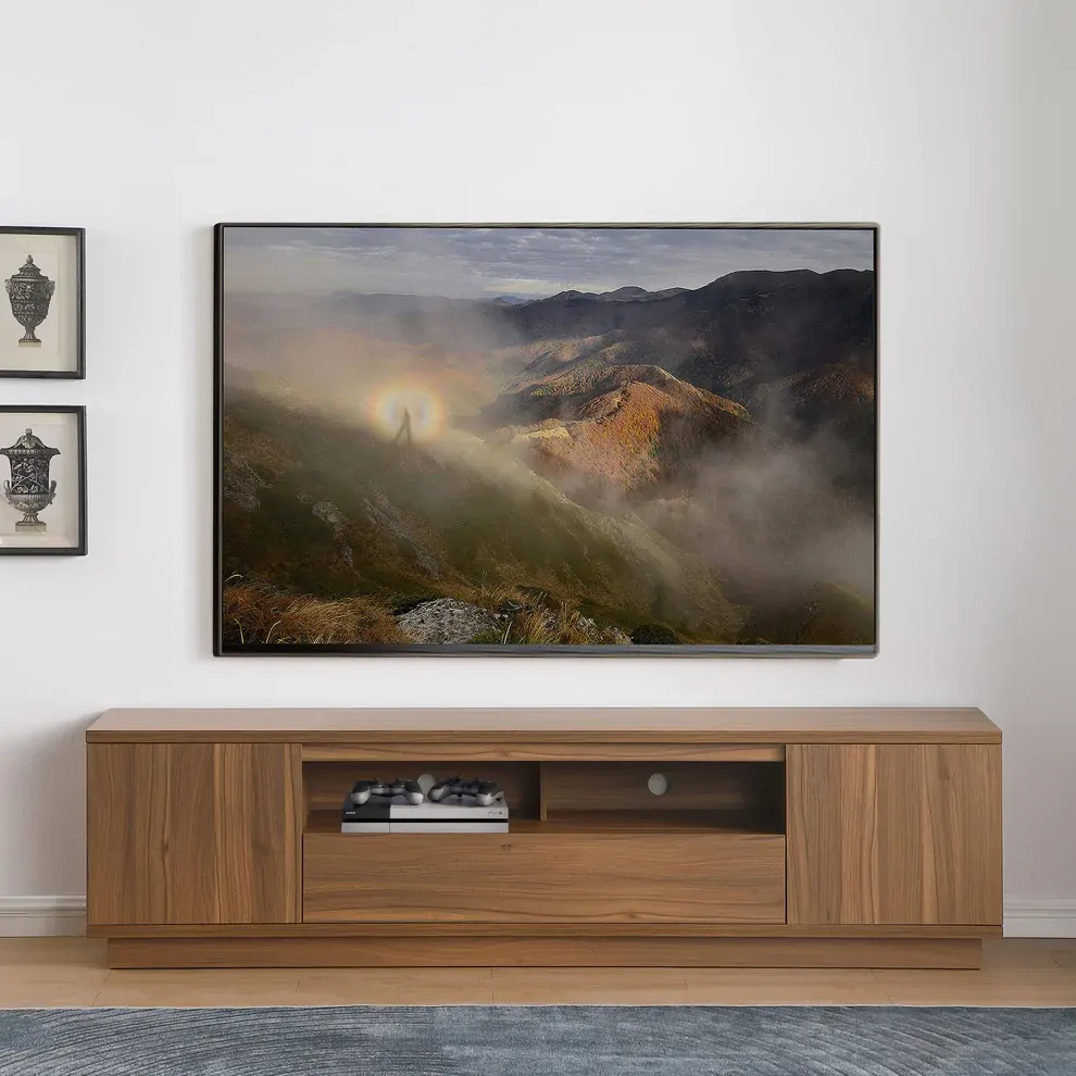 With a generously deep 450mm profile, it’s engineered to support today’s larger-format TVs and wider stands. The single drawer front opens to reveal two internal compartments on smooth telescopic runners, while the dual open component shelves with half-depth support are perfect for media players, receivers, or an extended sound bar system.