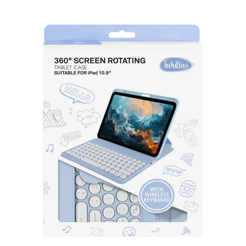 This Blue TechXtras 360° Screen Rotating Tablet Case is suitable for the iPad 10.9". This slim and lightweight case features a built-in tri-fold stand for hands-free convenience, easy access to all buttons and ports, and a handy stylus holder. Enjoy smooth transitions between landscape and portrait orientations.