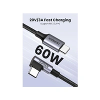 UGREEN 90 Degree Angle USB-C Male to USB-C Male 60W Braided Cable 3m
