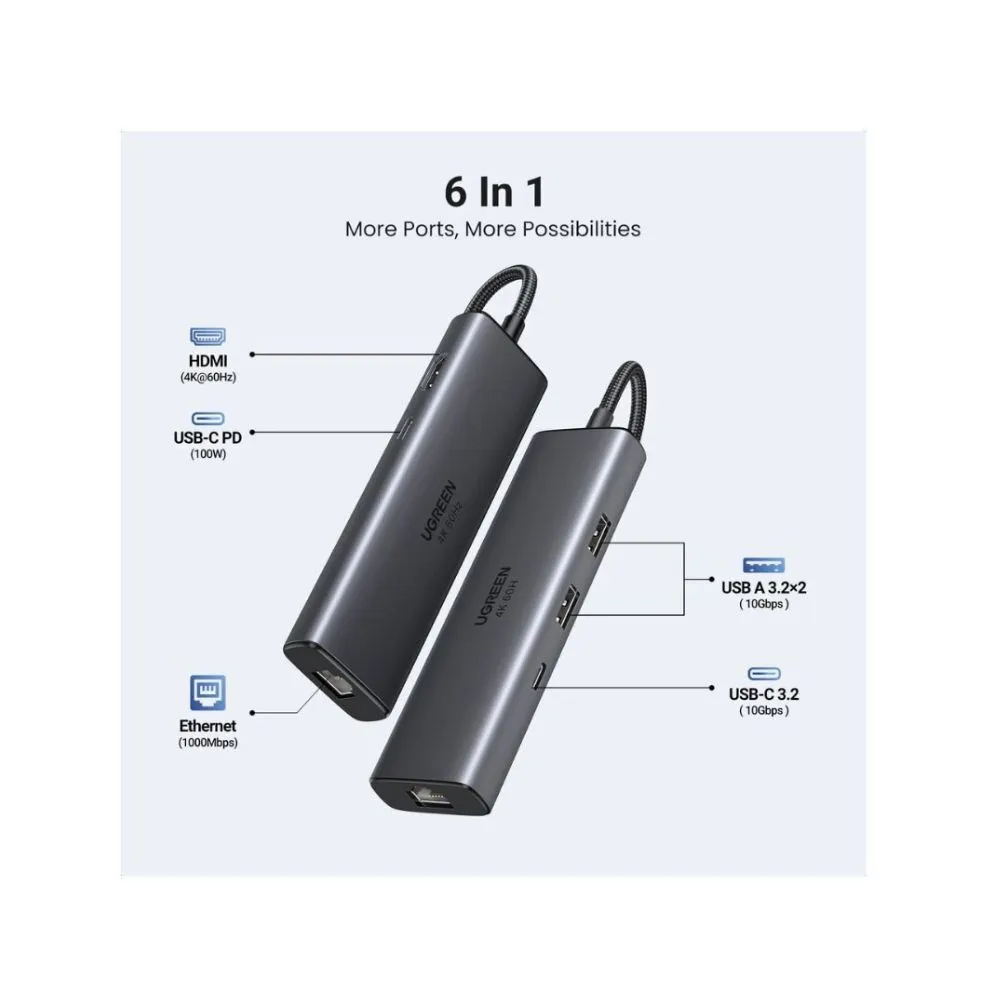 Upgrade your workspace with the UGREEN 6-in-1 USB C Hub—where connectivity meets convenience!