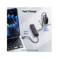 • Fast Charging: The hub supports input of 100W and output of 85W, allowing you to charge your devices quickly while using them.