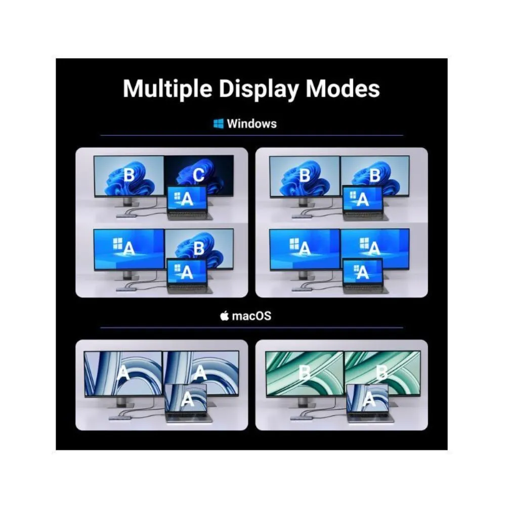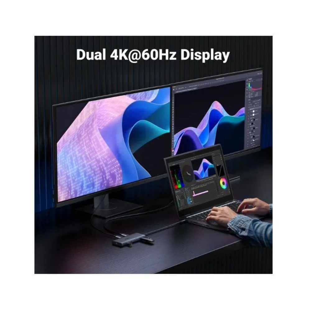Dual 4K at 60Hz Display: Experience stunning visuals with dual 4K displays at 60Hz. Perfect for multitasking, this hub allows you to mirror or extend your screen across two monitors, providing an immersive viewing experience.