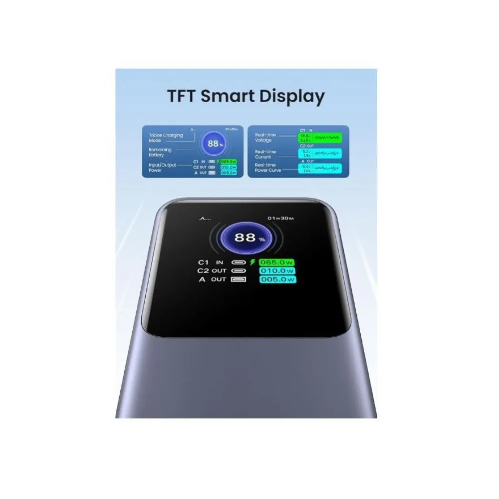 • Smart TFT Display: Real-time voltage, current, power input/output. You can understand the charging status of different devices promptly and intuitively. Compared to an LCD screen, the TFT display lets you know more.