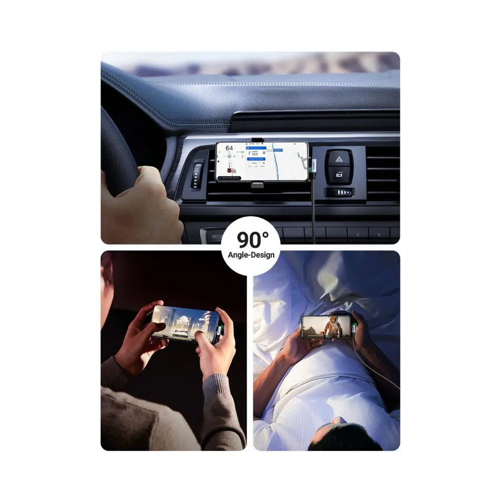UGREEN 1M USB-A to USB-C Cable - 90° Right Angle | Fast Charging | Nylon Braided
