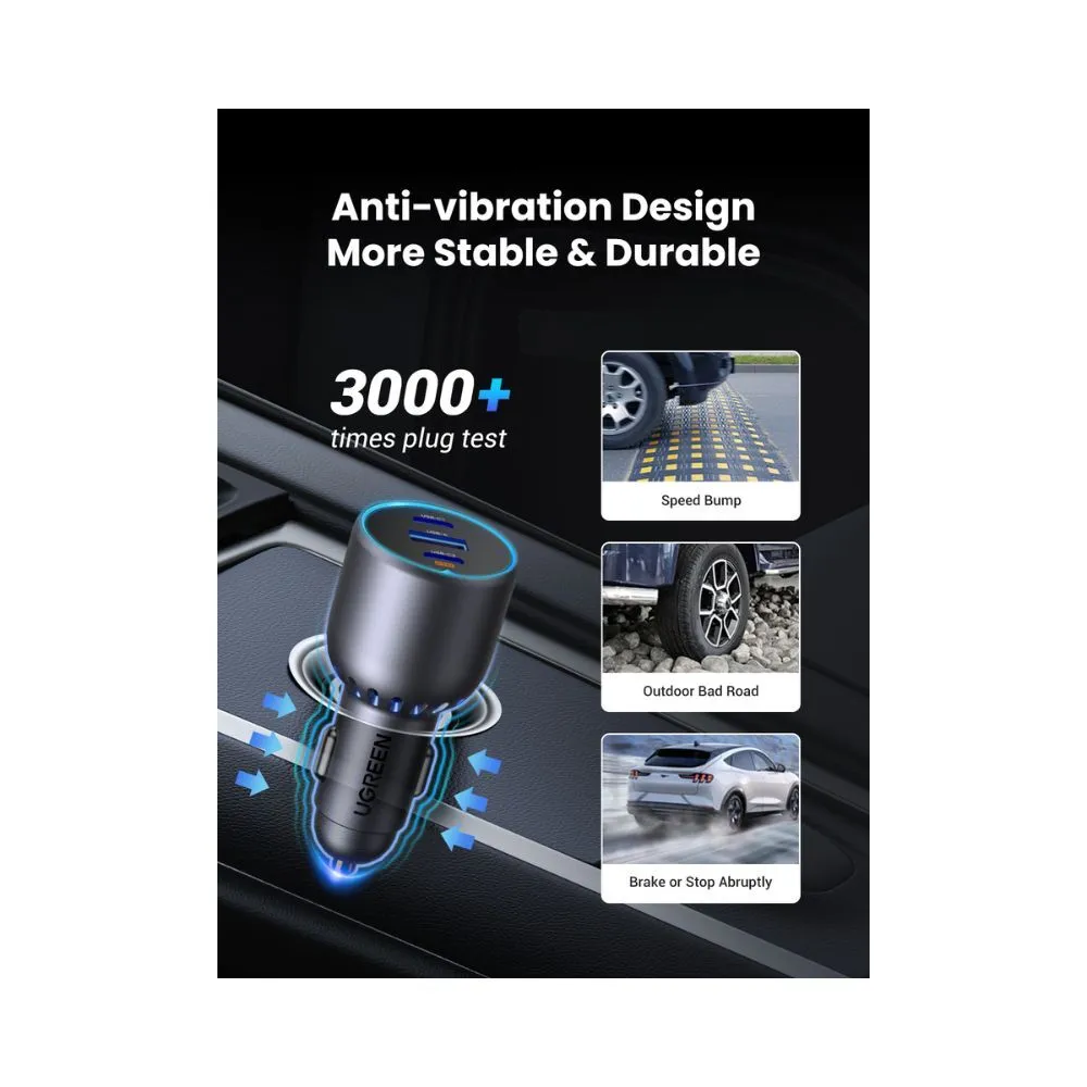 Upgrade your driving experience with the UGREEN 75W 3-Port Fast Car Charger—where speed meets safety!