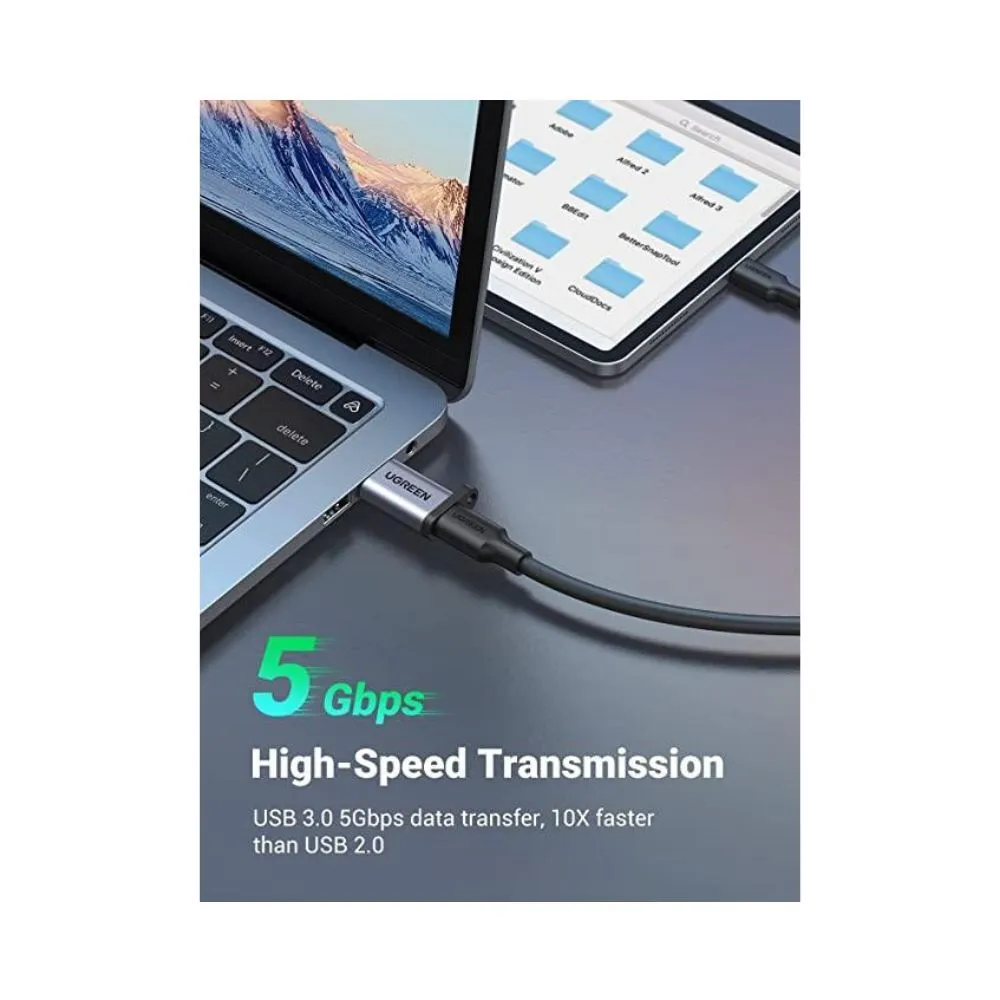 The UGreen USB 3.0 to USB-C Adapter lets you easily convert your USB-A port into a USB-C female port. Ideal for syncing data at speeds up to 5Gbps and supporting mobile charging up to 3A, this sleek aluminum adapter ensures fast and reliable performance.