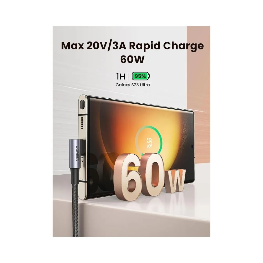 Get the perfect balance of speed, safety, and convenience with the UGREEN Right Angle USB-C Cable.
