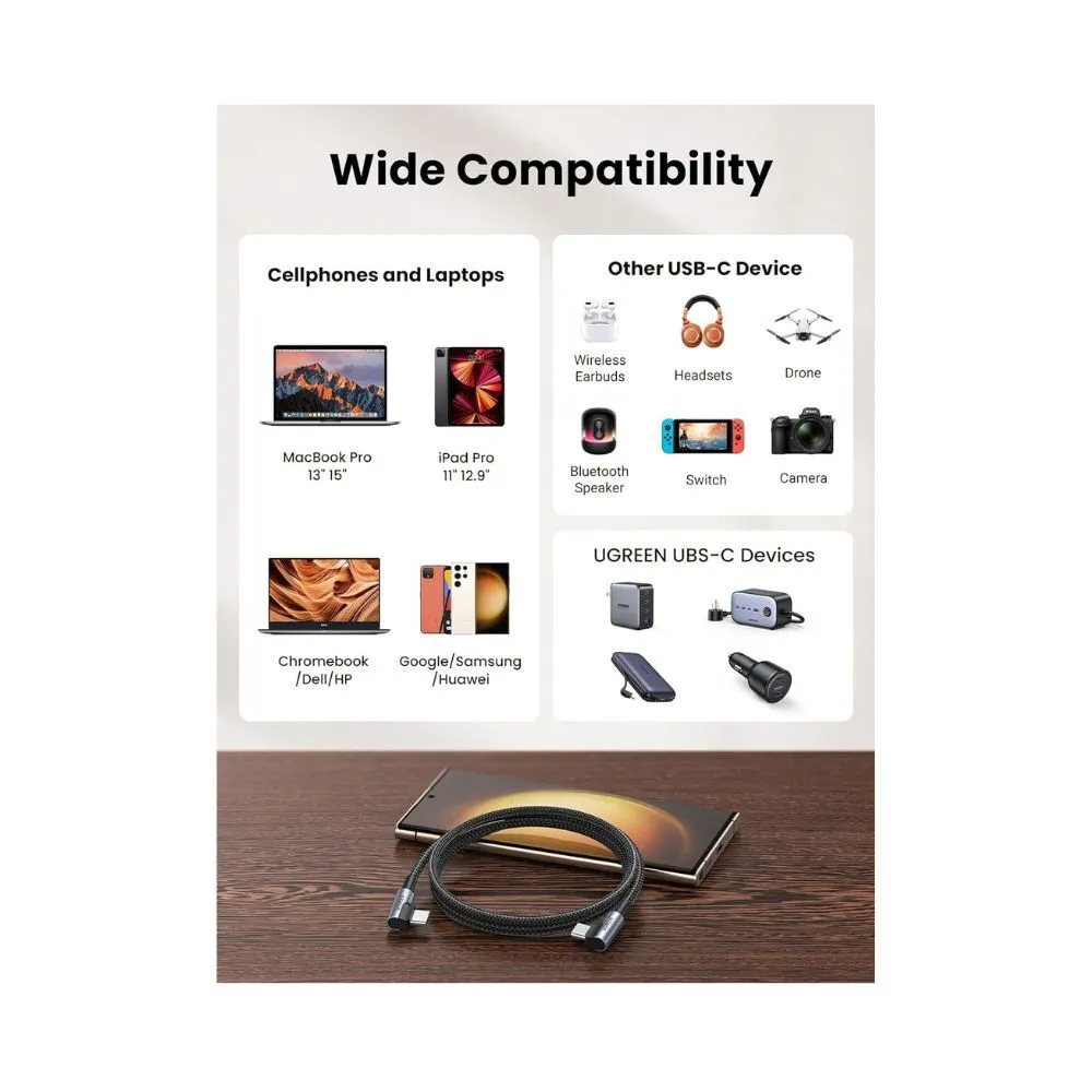 • 1 x UGREEN Right Angle USB-C to USB-C Cable (6.6FT)