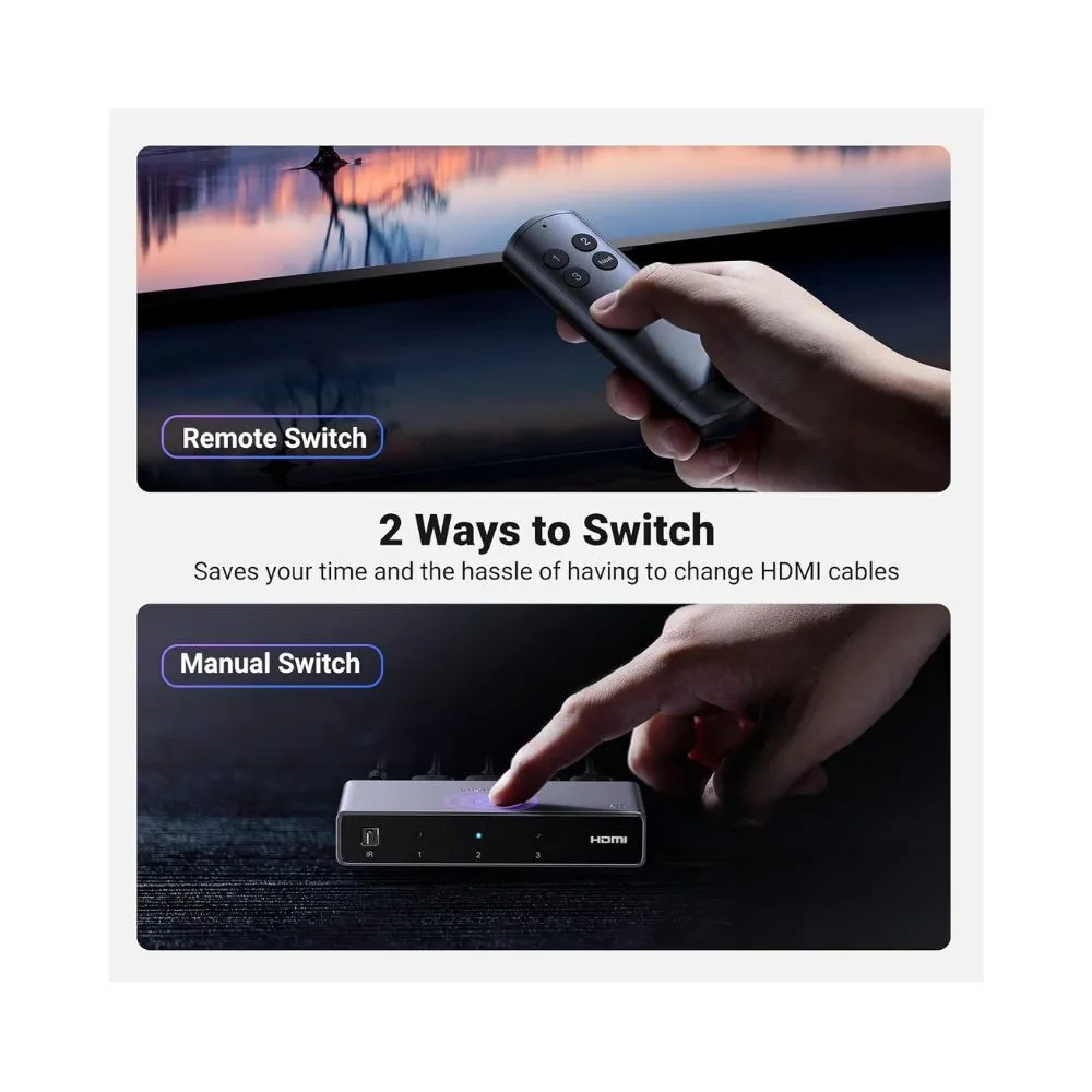 UGREEN HDMI 2.1 Switch 3-in-1 Out Splitter with Remote – 8K@60Hz, HDR, 3D, and CEC Support