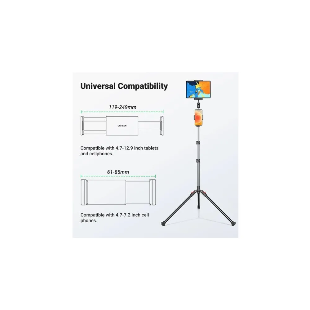 The UGREEN 2-in-1 Tripod Stand offers a hands-free solution for your tablet and phone. With two adjustable holders, it keeps your devices secure for activities like video calls, streaming, or reading.