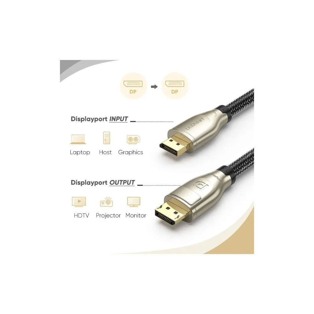 Experience stunning visuals with the UGreen 8K DisplayPort 1.4 cable. Supporting resolutions up to 8K at 60Hz, 4K at 144Hz, and 2K at 165Hz, this cable is perfect for gaming, home theaters, and multi-monitor setups. With a 32.4Gbps bandwidth, dynamic HDR, and durable construction, it ensures seamless, high-quality video and audio transmission.