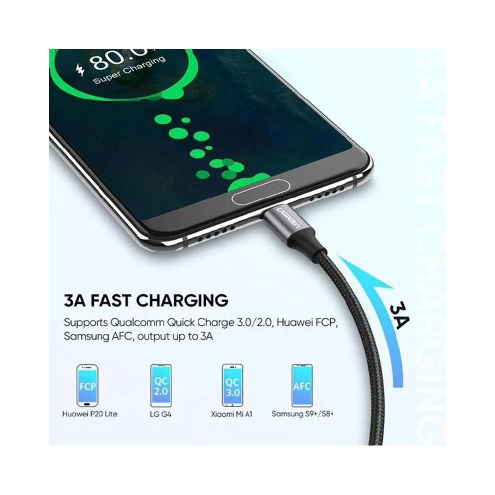 UGreen USB A to USB C Charging Cable - Nickel Plated Aluminum Braid, 0.5m