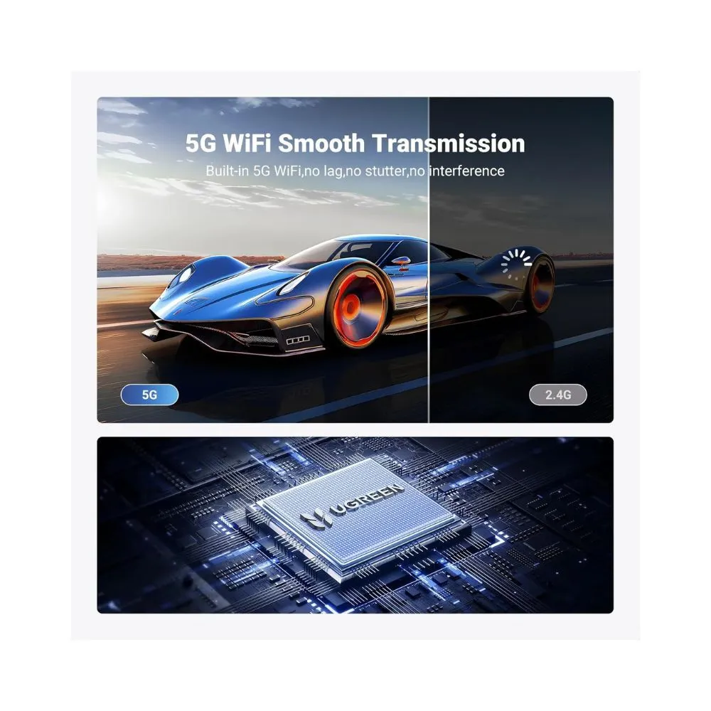 UGREEN Wireless HDMI Extender CM737 lets you transmit Full HD video and audio wirelessly without messy cables. Designed for presentations, home entertainment and gaming, this transmitter and receiver kit delivers smooth 1080p at 60Hz using stable 5GHz wireless technology.