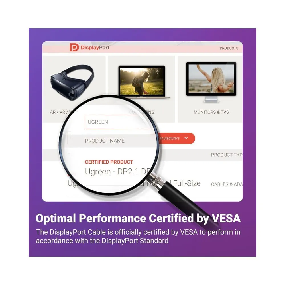 - Cutting-edge 16K DisplayPort cable supporting 16K@30Hz, 8K@240Hz, 4K@240Hz - 40Gbps bandwidth (VESA Certified) for stable, high-speed transmission - Supports HDR, HDCP 2.2, DSC 1.2a, FEC, UHBR10 - Ideal for gaming with FreeSync, G-Sync, VRR, ALLM & MST multi-screen support - Durable build with aluminium housing, triple shielding & nylon braided jacket - Wide compatibility with RTX / Radeon GPUs, gaming monitors & DP devices