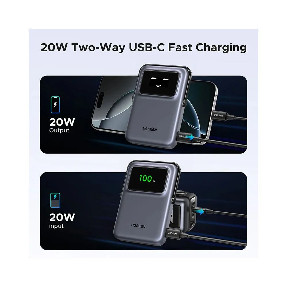 UGREEN Uno 10000 mAh Magnetic Wireless Power Bank delivers portable charging with convenient magnetic attachment, a fold-out stand and both wired and wireless output. Its compact design makes it ideal for travel, work or everyday carry, while offering reliable power for smartphones, tablets and more.