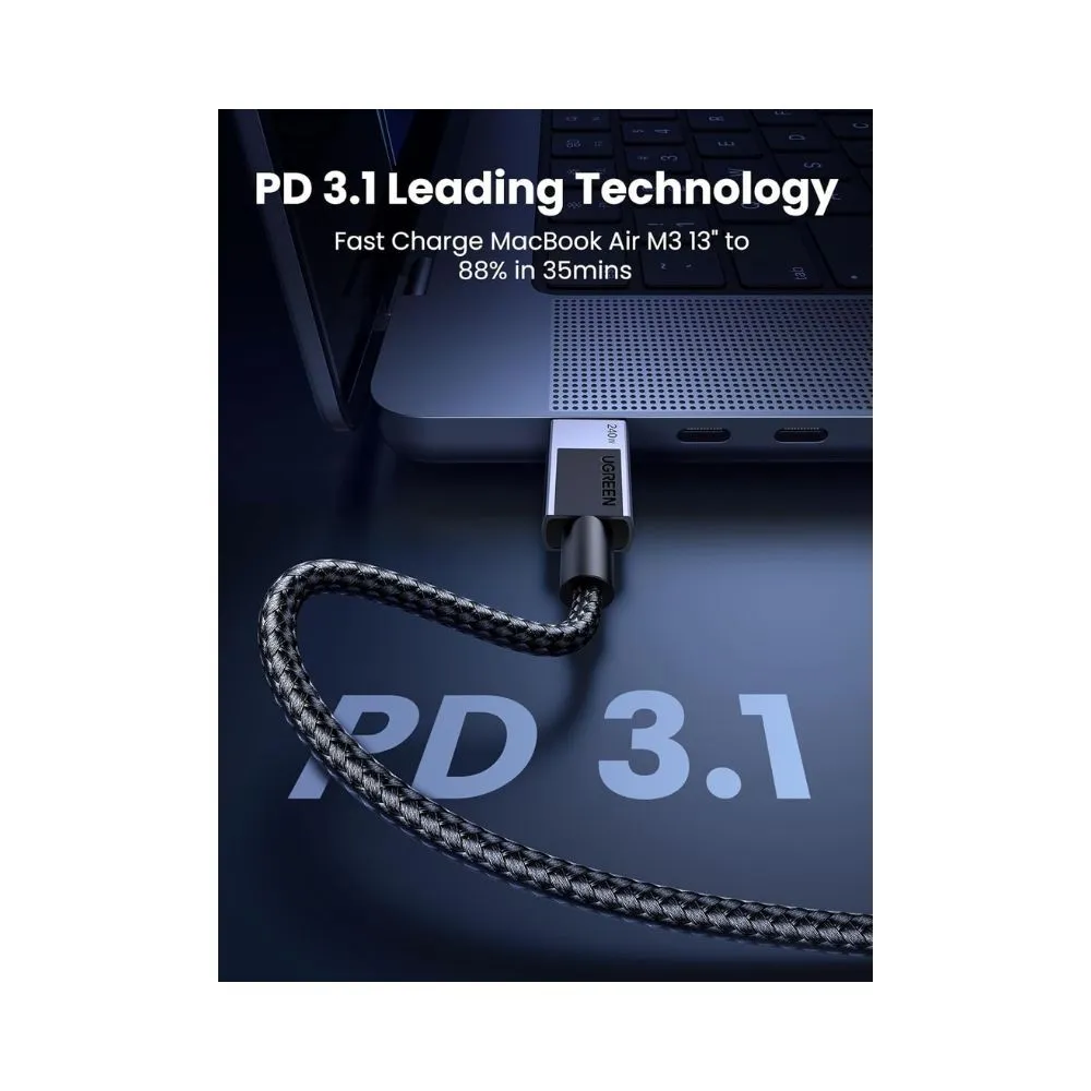 UGREEN 240W USB-C Cable delivers ultra-fast charging and reliable performance for a wide range of USB-C devices. Built with premium materials, it offers efficient power delivery, stable data transfer, and long-lasting durability.
