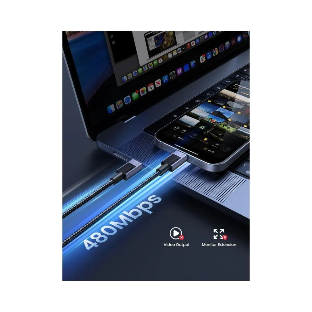 - 240W fast charging with PD3.1/PPS support - E-Marker chip for stable high-power charging - Durable nylon-braided design tested for 30,000+ bends - USB 2.0 data transfer up to 480Mbps - Aluminium housing and triple-shielded copper wiring - 1GB file transfer in approx. 30 seconds - Note: Does not support video output or display extension - Includes cable strap for easy storage
