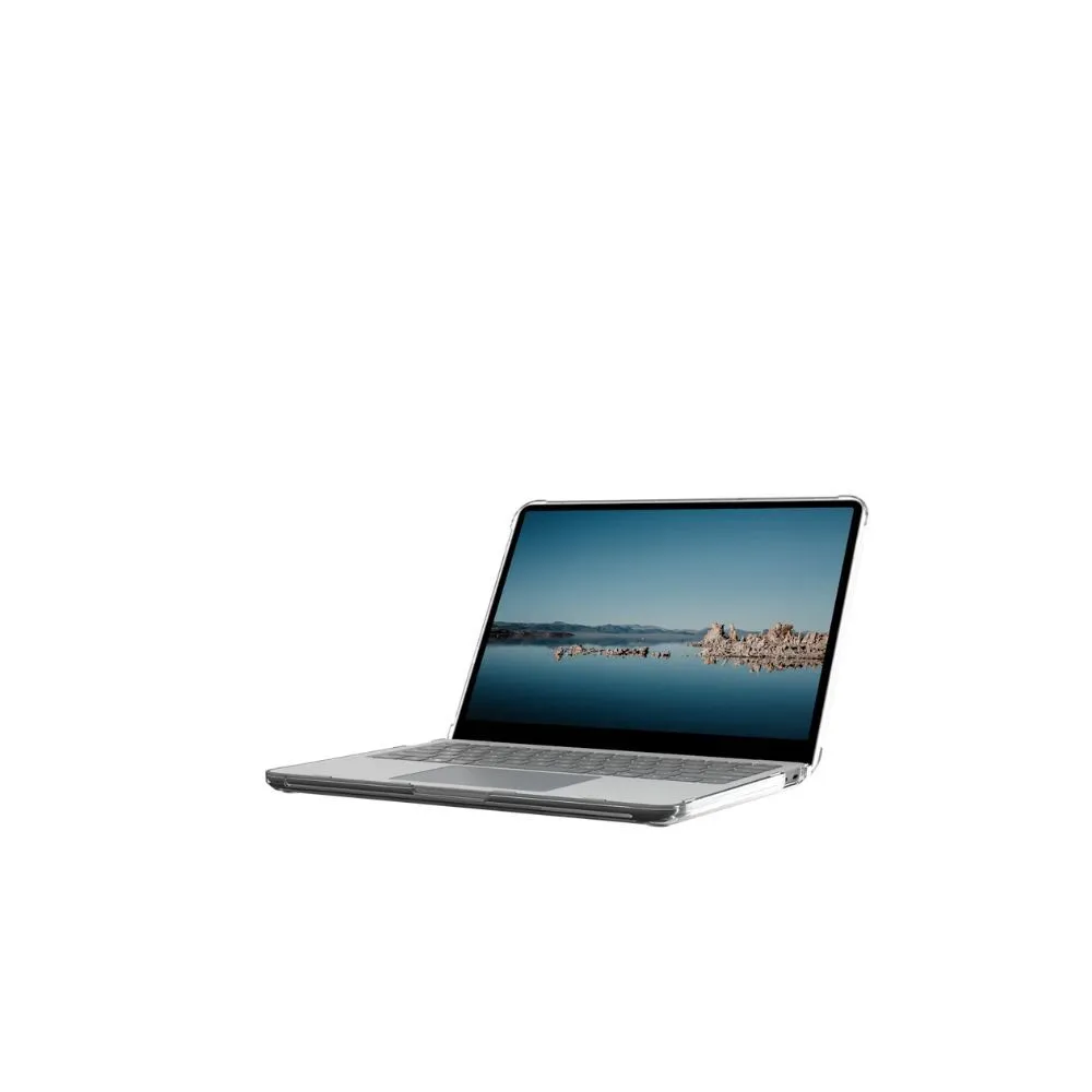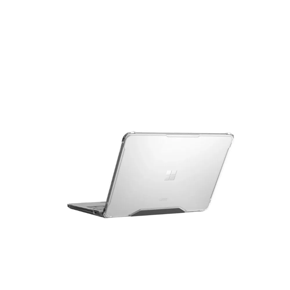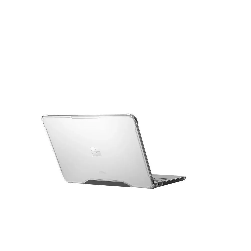 The UAG Plyo Case for Surface Laptop offers rugged, lightweight protection in a slim, clear design. Built with a co-molded PC and TPU shell, it features an impact-resistant core and reinforced corners for drop and scratch defense. Rubberized feet prevent slipping, while the hinged one-piece design with tactile grip ensures secure handling. Precision cutouts allow full access to ports and vents for airflow. Snap-on installation is quick and easy. Whether you're in the office or on the go, Plyo is the perfect blend of protection and performance for your Surface Laptop.